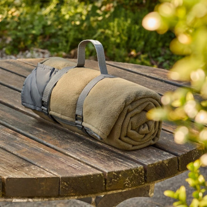Fleece Picnic Rug Roll with Charcoal Waterproof Backing and Webbing Straps